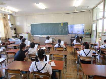 4年生は国語の学習を行っていました。説明文の段落分けを行い、学習をすすめていました。教室も暑くなっていますが、子どもたちはがんばっています。