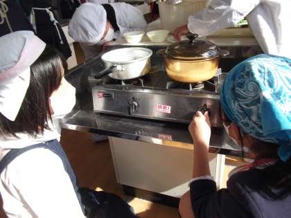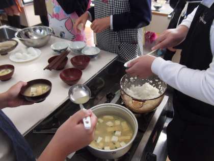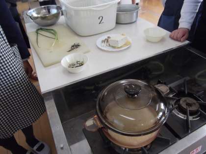 みそ汁の具は、とうふ、うすあげ、しめじ、ねぎを使いました。