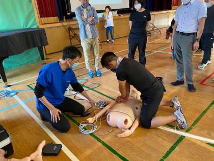 教職員は、毎年研修を受けることで救命救急法をいざというときに使えるようにしています。