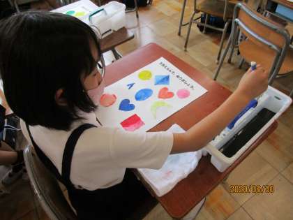 2年生は図工科の学習で絵の具の使い方を学習しました。水入れの使い方、パレットの使い方、筆の動かし方など一生懸命先生の話を聞くことができていました。これからが楽しみです。
