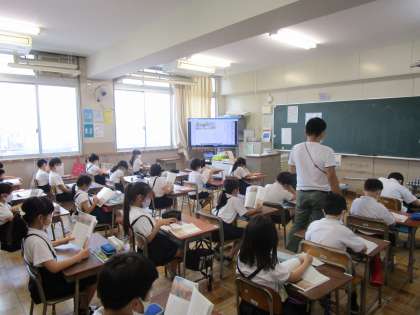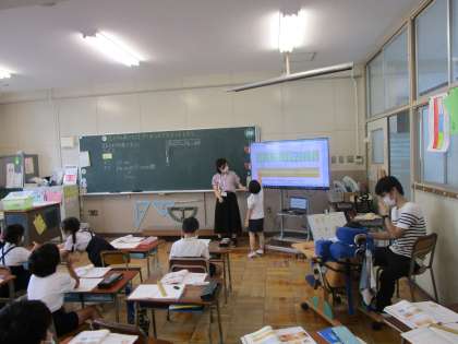 2年生は算数の学習で「ものさし」の使い方を勉強しました。3年生は国語の学習で物語文の音読を行っていました。4年生は国語の学習で新聞でまとめる勉強をしています。