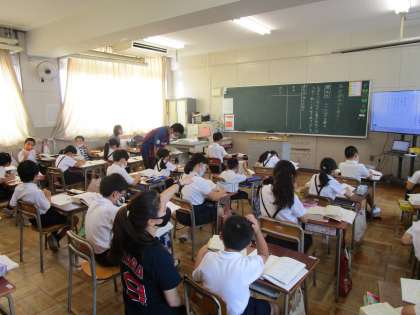 3年生は国語科で慣用句の学習に取り組んでいました。辞書を使って熱心に調べていました。