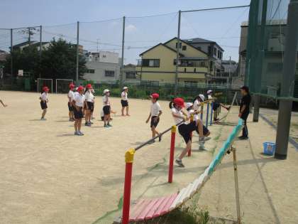 1学期の最終週に入りました。3年生は体育館と運動場で体育の学習を行っていました。午前中ですが、暑かったので、休憩を取りながら授業を行っています。