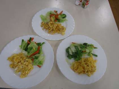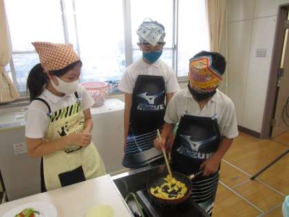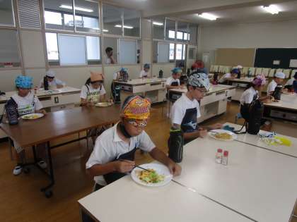 昨日に引き続き、6年生の調理実習がありました。上手に作り、静かに食べていました。家でも作ってみたいと話してくれたことがうれしかったです。