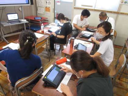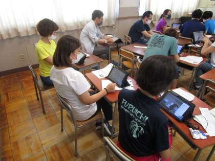 放課後は教職員の研修会を行いました。今日は今後取り組む学校と家庭との双方向通信について研修しました。Teamsのソフトを学校のタブレットにインストールし、先生と子ども役に分かれて演習しました。課題も見えましたので、準備を整えていきたいと思います。