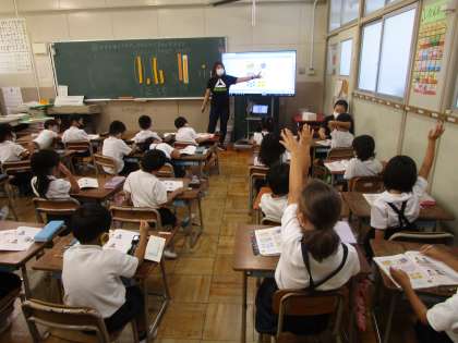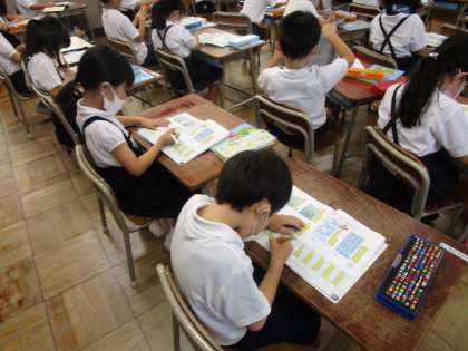 1年生は算数科で10より大きい数の学習に取り組んでいました。ブロックを使ったり、図をえんぴつで囲ったりしながら、10のまとまりを大切にして10より大きい数の構成を考えることができていました。