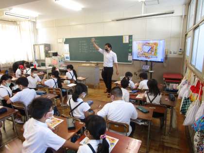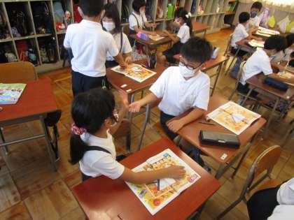 3年生は外国語活動と理科の学習に取り組んでいました。外国語活動では、CNETの先生と一緒に楽しくじゃんけんなどの活動しながら学習していました。