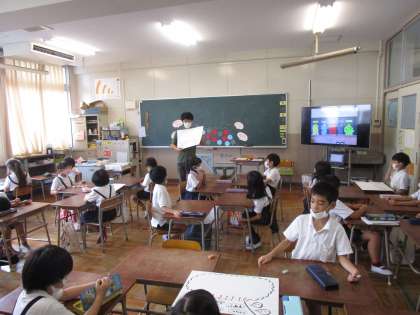 2年生は人権教育の取り組みを行っています。子どもたちは自分の気持ちについて学習しています。つらいとき、いやなことがあったとき、いらいらしたときなど、マイナスの気持ちになったときに、どんな方法で気持ちを切り替えるか友だちと意見交換していました。