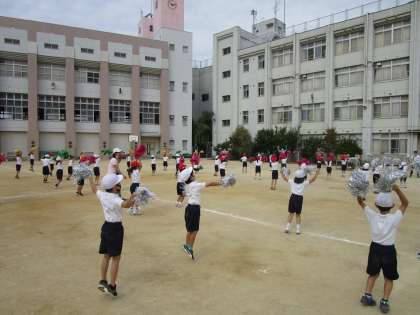 1年生と6年生の練習の様子です。1年生は初めて練習でポンポンを持ちました。子どもたちは大変盛り上がり、やる気も高まりました。いよいよ明日から10月に入ります。運動会が近づいてきました。