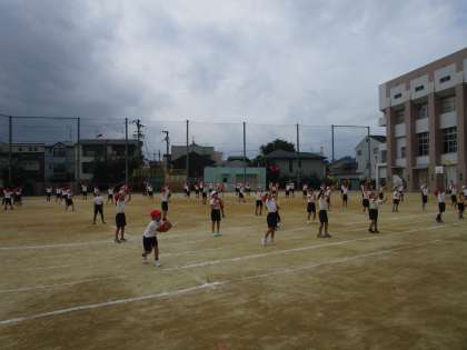 1・2年生の運動会練習の様子です。本番で使うポンポンやリングを使い練習しました。子どもたちは本番を楽しみにしています。