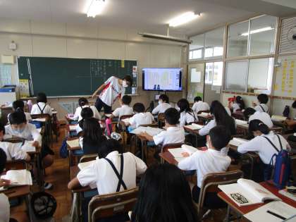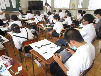 5時間目の授業の様子です。運動会の練習は、通常の体育の時間で行っています。教室で授業を受けている時間は、子どもたちは熱心に授業に取り組んでいます。5年生は国語、6年生は図画工作科の学習に取り組んでいました。