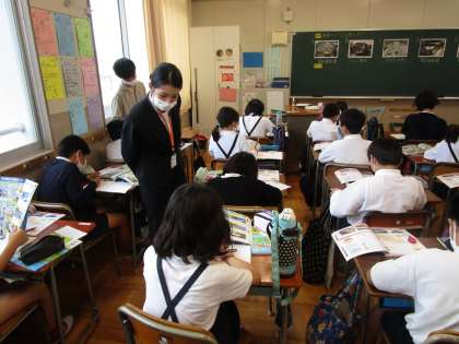 5年生の教育実習生が社会科の研究授業を行いました。自動車工業の学習を行いました。子どもたちは熱心に学習に取り組むことができていました。