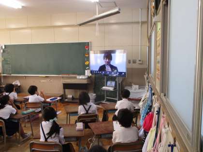 10月14日(水)で約3週間の教育実習が終了しました。リモート朝会で実習生のあいさつを行いました。最後の授業を行う教育実習生の姿もありました。