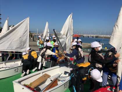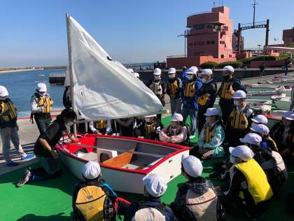 ヨットの組み立ての説明を子どもたちは真剣に聞いています。難しいですが、グループで協力して組み立てています。