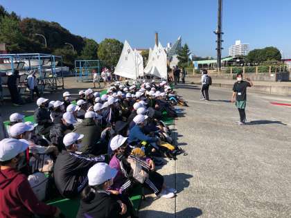 海洋センターに到着しました。最高のコンディションです!午前中のプログラムはOPヨットです。今からヨットの組み立てを行います。
