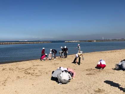お弁当を食べた後は、午後からのシェルメモリーで使う貝殻を浜辺で探しました。どんな貝殻があるか一生懸命探しています。