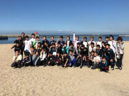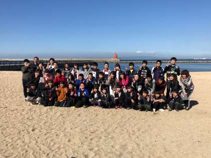 浜辺で記念撮影をしました。全員出席でよかったです!