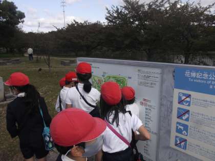今日は鶴見緑地公園で校外オリエンテーリングがありました。