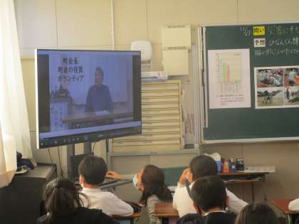 5時間目は4年生社会科の研究授業がありました。大阪府でおきた風水害について学習しています。今日は地域防災リーダーの方の協力をいただき、インタビューを通して自然災害に対しての「共助」の重要性を考えました。子どもたちのノートにはしっかり調べたことや考えたことが書き込まれています。学習の積み重ねの姿が見えました。