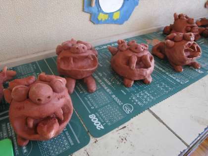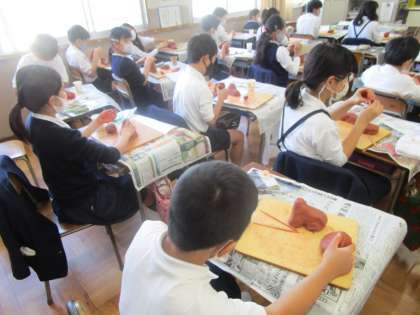 5年2組は図画工作科の学習で粘土を使って「シーサー」を作っていました。粘土のかたまりからシーサーを作る過程はなかなか難しいですが、子どもたちはがんばっていました。どのような作品に仕上がるか楽しみです。5年1組は一足早く作品ができていましたので紹介します。素敵なシーサーになりました。