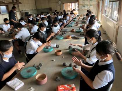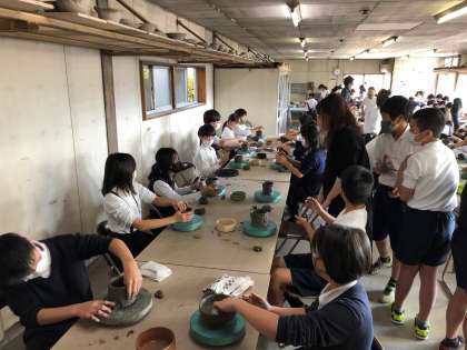 何を作るかを決めてから作陶を始めます。湯呑み、お茶碗、お皿など子どもたちは思い思いに作る物を決め、作陶に取り掛かりました。粘土を伸ばし、作品によって形を変えていきますので、自分と向き合って作らないといけません。