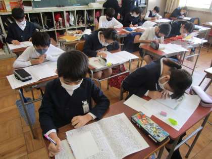 6年生は昨日、修学旅行から帰ってきましたが、今日もみんな元気に登校できていました。よかったです。授業では、卒業文集の作成に取り掛かっています。清書したり学級のページを考えたりしています。