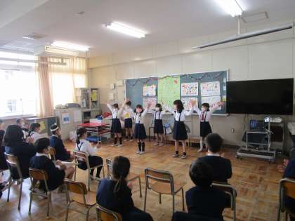 2年生は各クラス、お楽しみ会を行っていました。クラスごとに様々な出し物を工夫して盛り上がっていました。