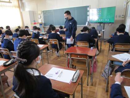 6年生の算数の授業の様子です。月曜日は今市中学校の数学の先生が来られて授業に関わっていただいています。今日は中学校で学ぶ「正の数・負の数」の授業をしていただきました。今後も数回していただく予定です。子どもたちはいつもと違う雰囲気で授業を受けていました。