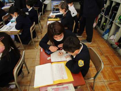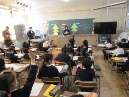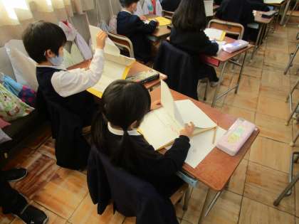 1年生は3時間目に生活科の研究授業がありました。「かぞくのにこにこおたからゲット大作戦」です。子どもたちは家でのお手伝いや自分でがんばったことをワークシートに書き、お家のかたからもあたたかいコメントをいただいています。子どもたちにとってはお家の方から自分を認めてもらっていることは大変な自信につながることです。一人一人の頑張りを次は学級で発表します。