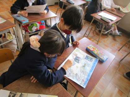 昨日は2年生生活科の研究授業を行いました。「もっと なかよし まちたんけん」の学習です。先日2年2組で研究授業を行いました。この日は3組で研究授業を行いました。子どもたち一人一人が関心を持っている場所、人などをパンフレットや地図、巻物など様々な形式にまとめ、1年生に伝えます。2年生の子どもたちは、本年度交流活動ができなかったので楽しみにしています。