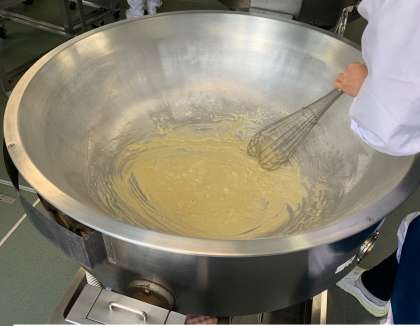 さけのクリームスパゲッティは、紅ざけフレークを使用して、春らしい淡いピンク色に仕上げました。綿実油と小麦粉で作った手作りルウに、クリームとチキンブイヨンで旨みを加えています。