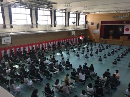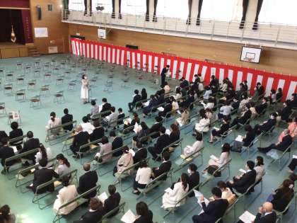 保護者の皆様が見守る中、よい姿勢で校長先生やPTA会長からのお祝いの言葉を聞きことができていました。また、入学式後には、保護者会があり、1年生担任の先生やPTA会長から今後の説明がありました。