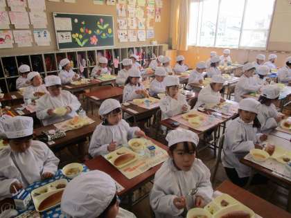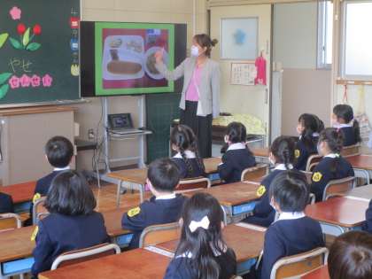 1年生は、今日から小学校での給食が始まりました。3時間目に栄養教諭から給食に関わるお話を聞きました。給食の時間は、子どもたちから「おいしい」という声がたくさん聞こえてきました。今はみんな同じ方向を向いて静かに給食を食べます。