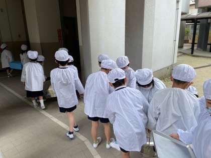 1年生も、給食当番の仕事をみんなで協力してがんばっています。