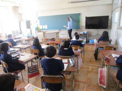 学校に登校している子どもたちは教室で家庭学習と同じ課題に取り組んでいます。5年生はオンラインでみんなが一緒に漢字の学習に取り組むことができていました。学校に登校している子どもたちも熱心に課題に取り組んでいました。