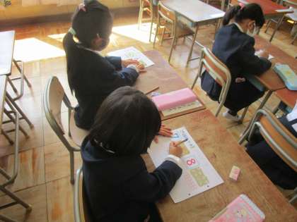 1年生の2時間目家庭学習の時間の様子です。数字を書くワークシートに静かに取り組むことができていました。よくがんばっています。