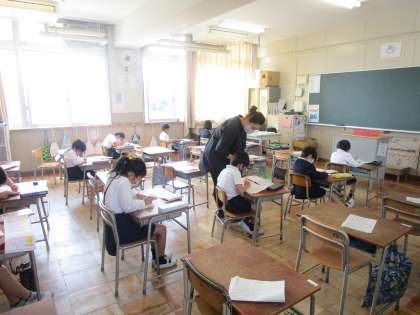 家庭学習の時間帯の様子です。3年生は漢字の学習をプリントを使って行っていました。6年生は午後の家庭学習の時間帯にリモートを活用して国語や社会の学習に取り組んでいました。先生もカメラの使い方など工夫しています。