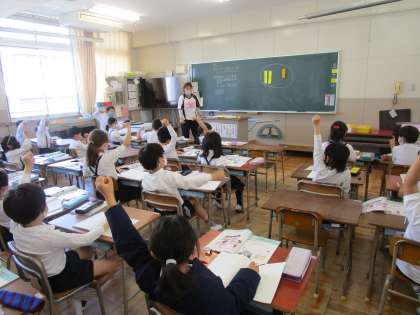 1年生・2年生の学習の様子です。1年生は国語の学習に取り組んでいました。平仮名や「あいうえおのうた」の学習に取り組んでいました。大きな声は出せませんが、教科書を見て上手に読むことができていました。