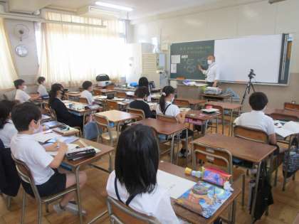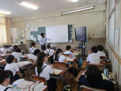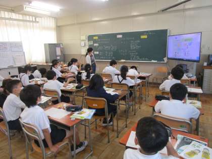 4時間目、5年生は社会科と算数科の学習に取り組んでいました。算数は学級を分割して授業を行っています。子どもたちはしっかり集中して学習に取り組むことができています。