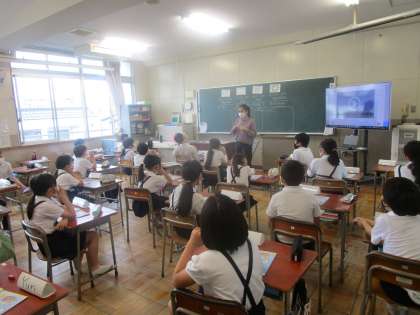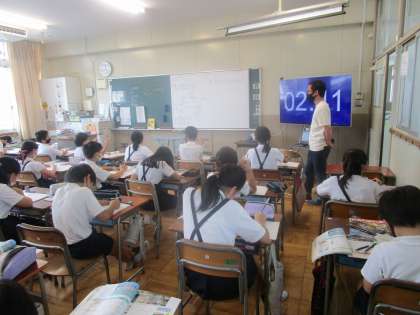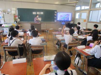 4年生は外国語活動の学習にCーNETの先生と一緒に取り組んでいました。ゲームを交えて楽しく学習に取り組むことができていました。