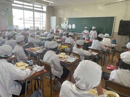 子ども達は、いただきますの前に、給食カレンダーでその日の給食の食材や特徴などを確認しています。