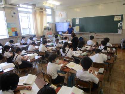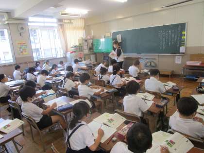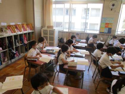 2年生は国語科の学習に取り組んでいました。観察記録の書き方や物語文の読み取りを行っていました。蒸し暑い中、子どもたちはがんばっていました。