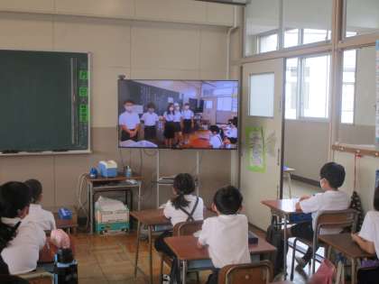 児童朝会は3年1組の教室から中継で行いました。子どもたちも中継の児童朝会に慣れてきました。放送委員会の児童から連絡がありました。