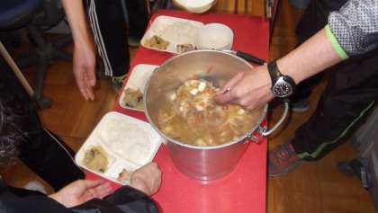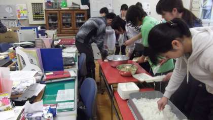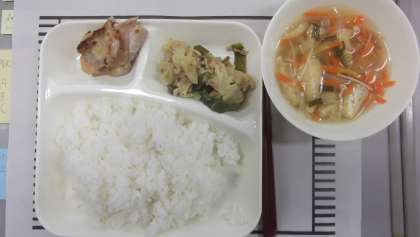 献立は、鶏肉と醤油のマヨネーズ焼き、すまし汁、野菜炒め、米飯