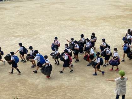 出発式では代表の児童が保護者、教職員の方々に感謝の気持ちを述べることができ、立派なあいさつでした。5年生の子どもたちが全員出席できたことをありがたく思っています。林間学習の間、不定期になりますが、子どもたちの様子をお知らせさせていただきます。