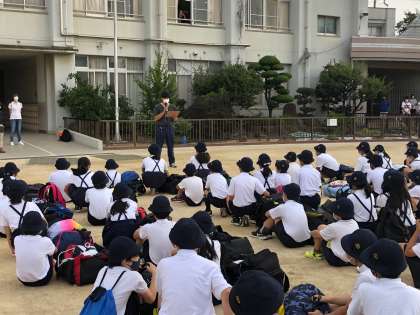 出発式では、PTA代表の方から子どもたちにメッセージをいただきました。