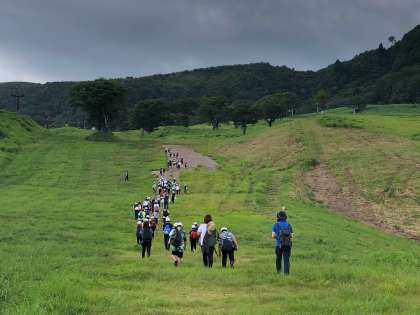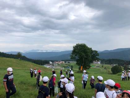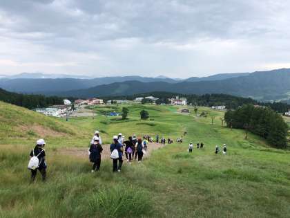 箸づくりを終えた後、宿舎前のゲレンデで散策をしました。子どもたちはゲレンデに咲いている花を摘んだり、バッタなどのムシを捕まえて喜んでいました。