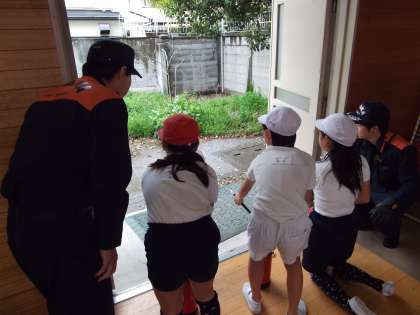 消防署の方の説明を聞き、いよいよ訓練開始です。