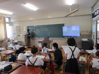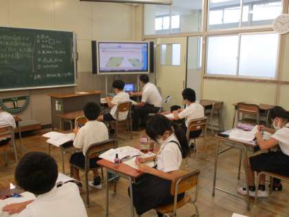 4年生は学級を分割し算数の学習に取り組んでいました。平行四辺形の性質について学習することができていました。