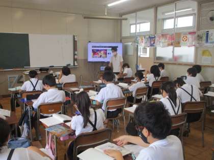 5年生は国語科の学習でしたが、今日は今市中学校の国語科の先生に授業をしていただく日でした。「敬語」について学習していました。